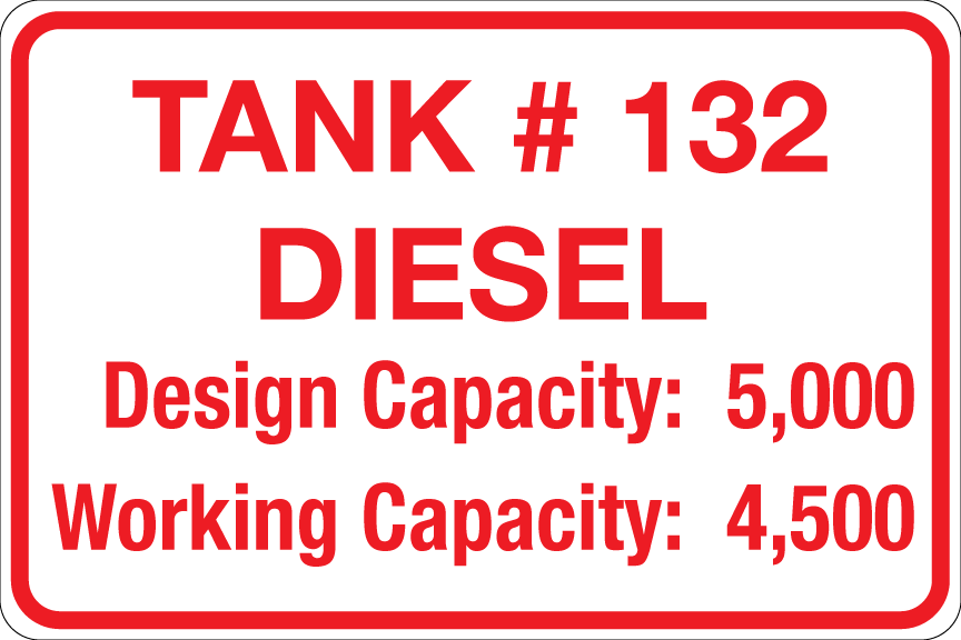 CAS-128-TC - 12.0"W X 8"H - Tank # - Product - Design and Working Capacity - Red on White background Aluminum Sign