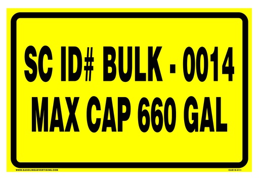 CAS18-011 - 18" x 12" SC ID# BULK - 0014 MAX CAP 660 GAL Sign