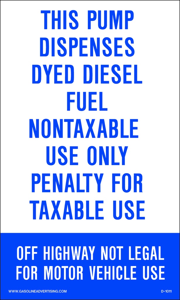 THIS PUMP DISPOSES DYED DIESEL FUEL NON TAXABLE USE ONLY