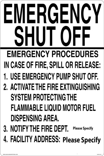 CAS18-015 - 16" x 24" Metal - Emergency Shut Off...