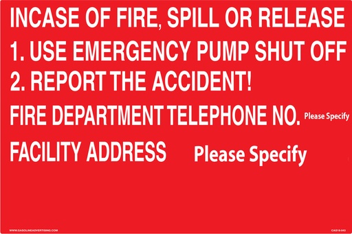 CAS18-012 - 14" x 16" Metal - Emergency Procedures