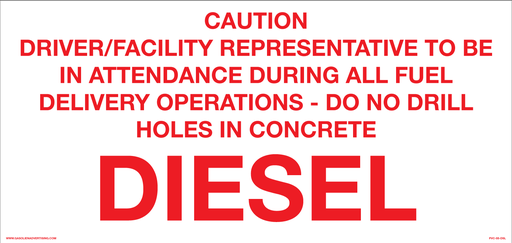 PVC-05-GAS - 20"x 9.5" - "CAUTION DRIVER/FACILITY REPRESENTATIVE TO BE IN ATTENDANCE DURING ALL FUEL DELIVERY OPERATIONS-DO NOT DRILL HOLES IN CONCRETE DIESEL"R/W PVC 3MM UV Ink