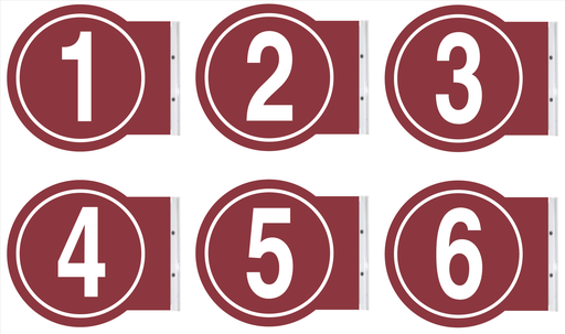 10" ROUND PUMP #'s - Powdercoated Burgundy with White #'s 5 on one side and 6 on the other side per set-Left Bracket Odd #